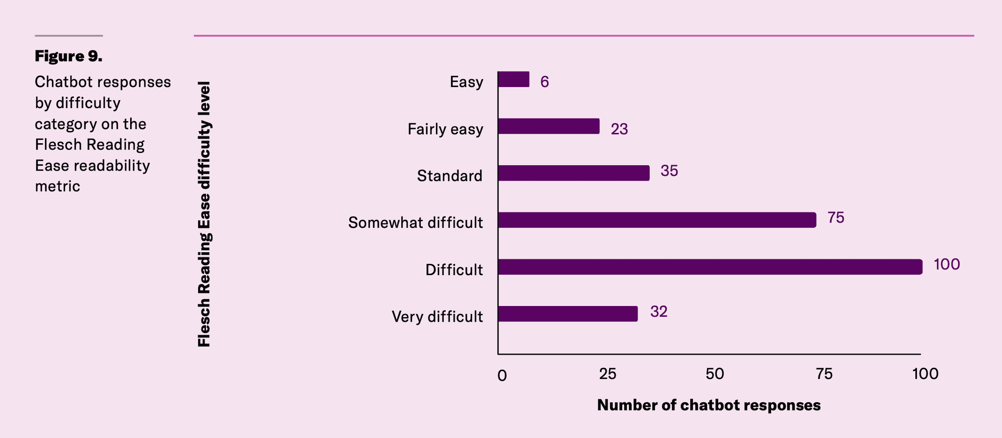 Chatbot responses averaged a 10th to 12th grade reading level — higher than the recommended 8th grade standard but significantly more accessible than source policy manuals, which require college-level reading ability.