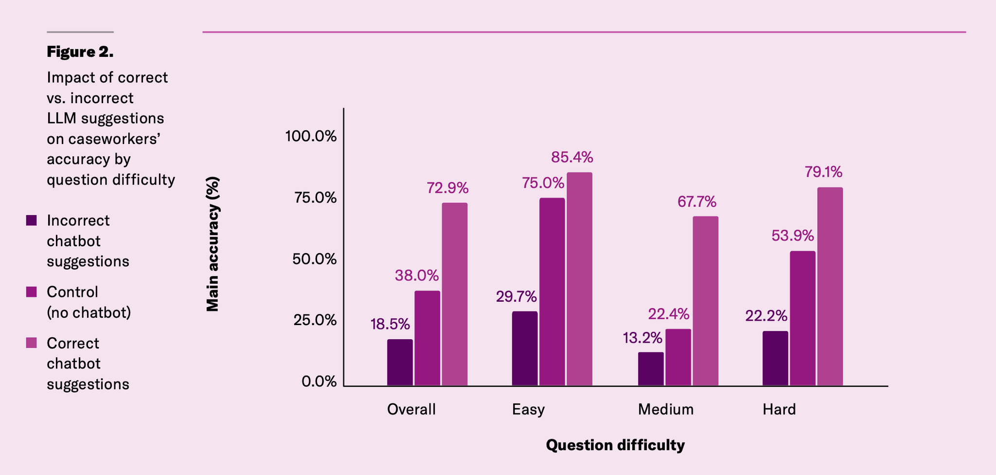 A randomized controlled trial with 125 caseworkers examining accuracy effects from being shown AI-generated responses to hypothetical client questions developed from real experiences.