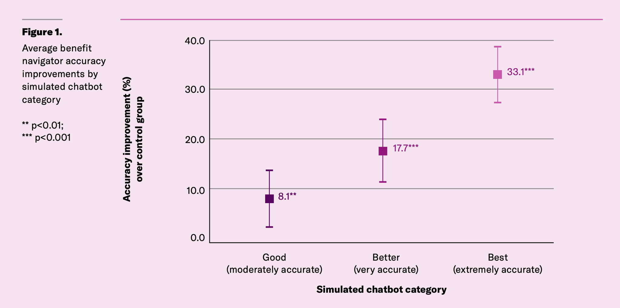 The chatbot is estimated to improve caseworker accuracy by an average of 40% with stronger improvements for more difficult client questions.